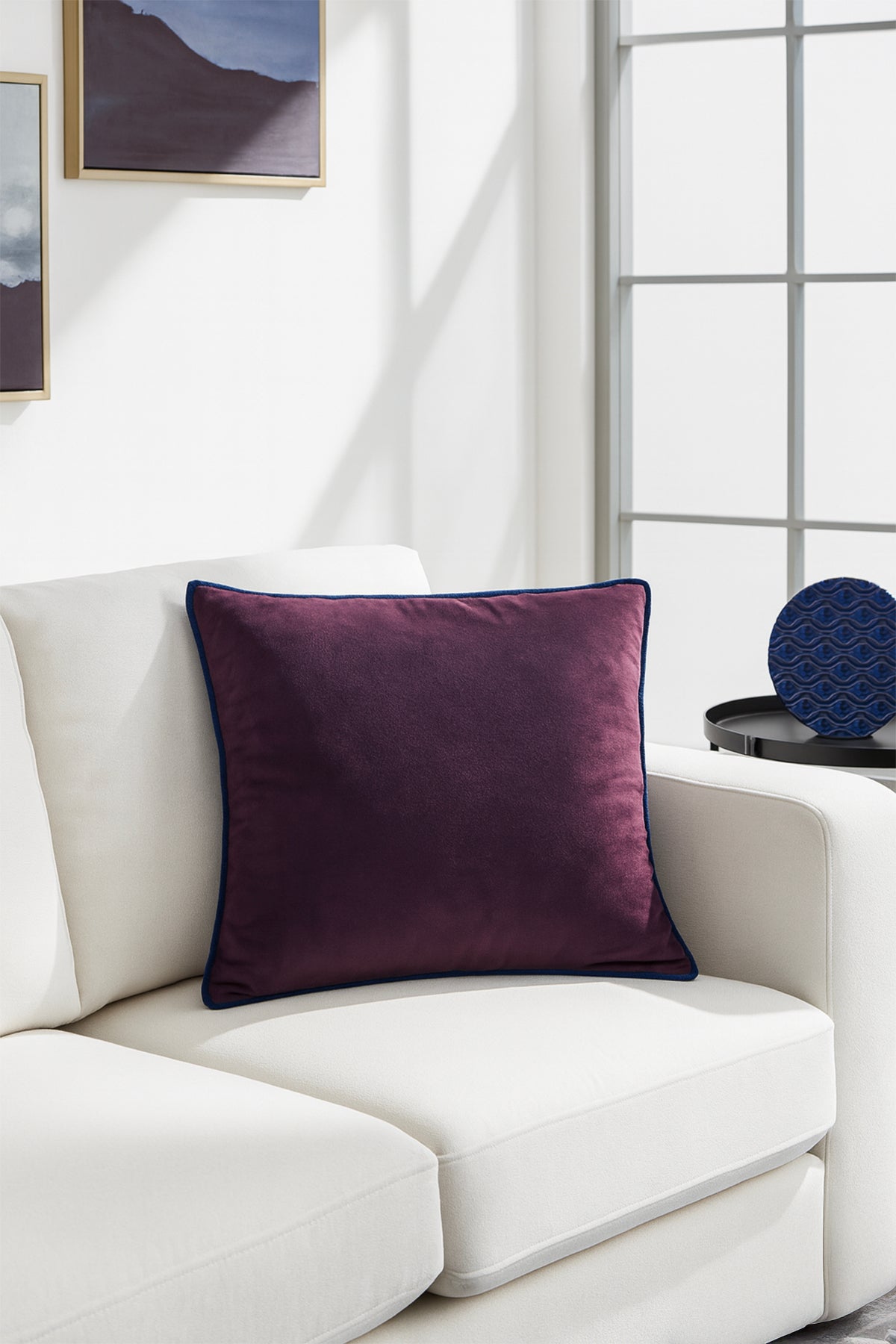 Biyeli Kadife Kırlent Kılıfı Mor Gri 50x50