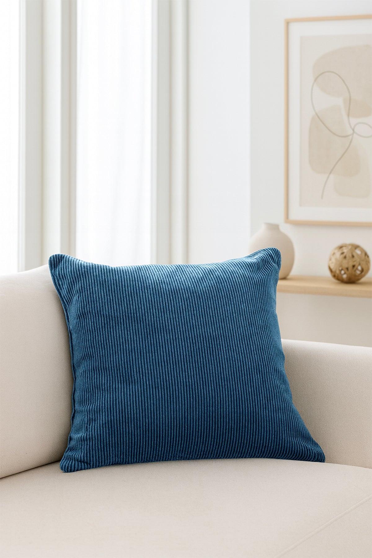 Çizgili Kadife Kırlent Kılıfı Lacivert 50x50