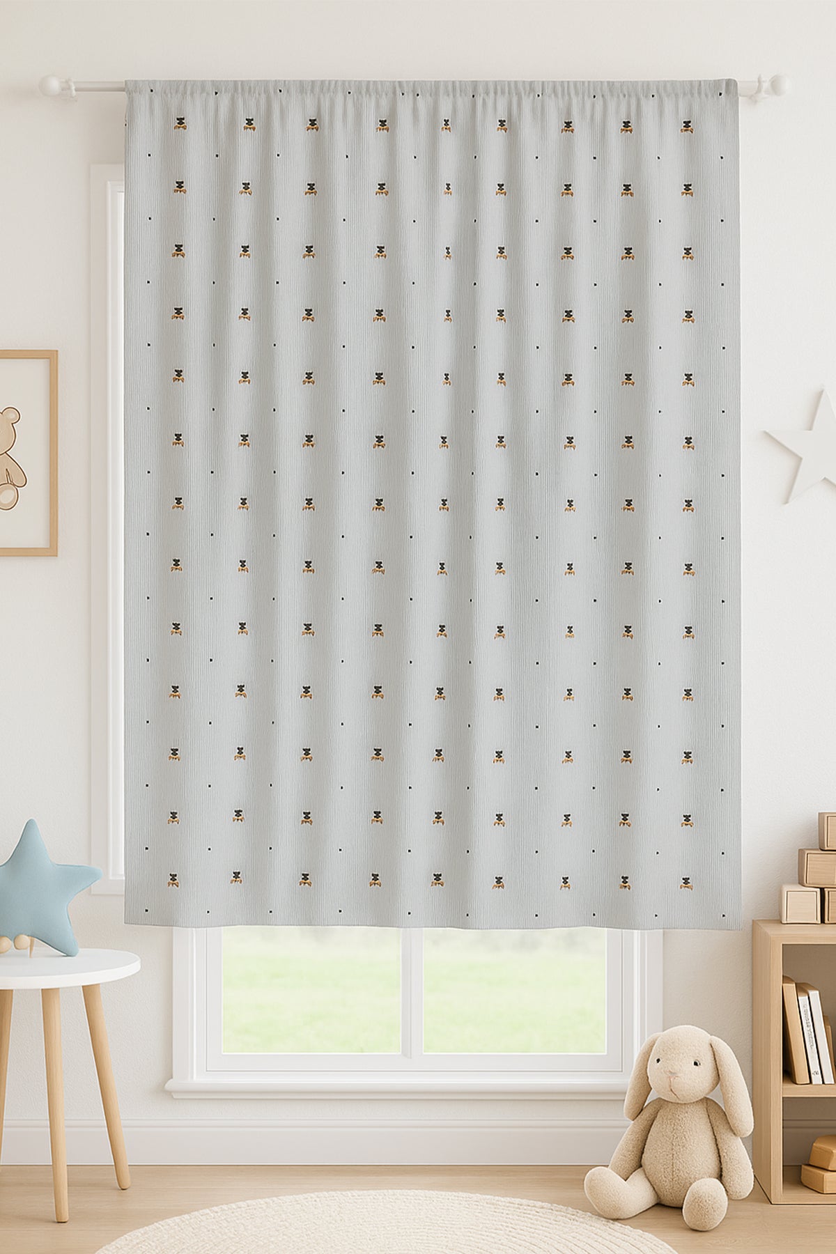 - Çocuk odaları için özel olarak tasarlanmış astarlı fon perde. Gri tonlarında arı desenleri ile sade ve modern bir görünüm sunar; odalara zarif bir dokunuş katar.