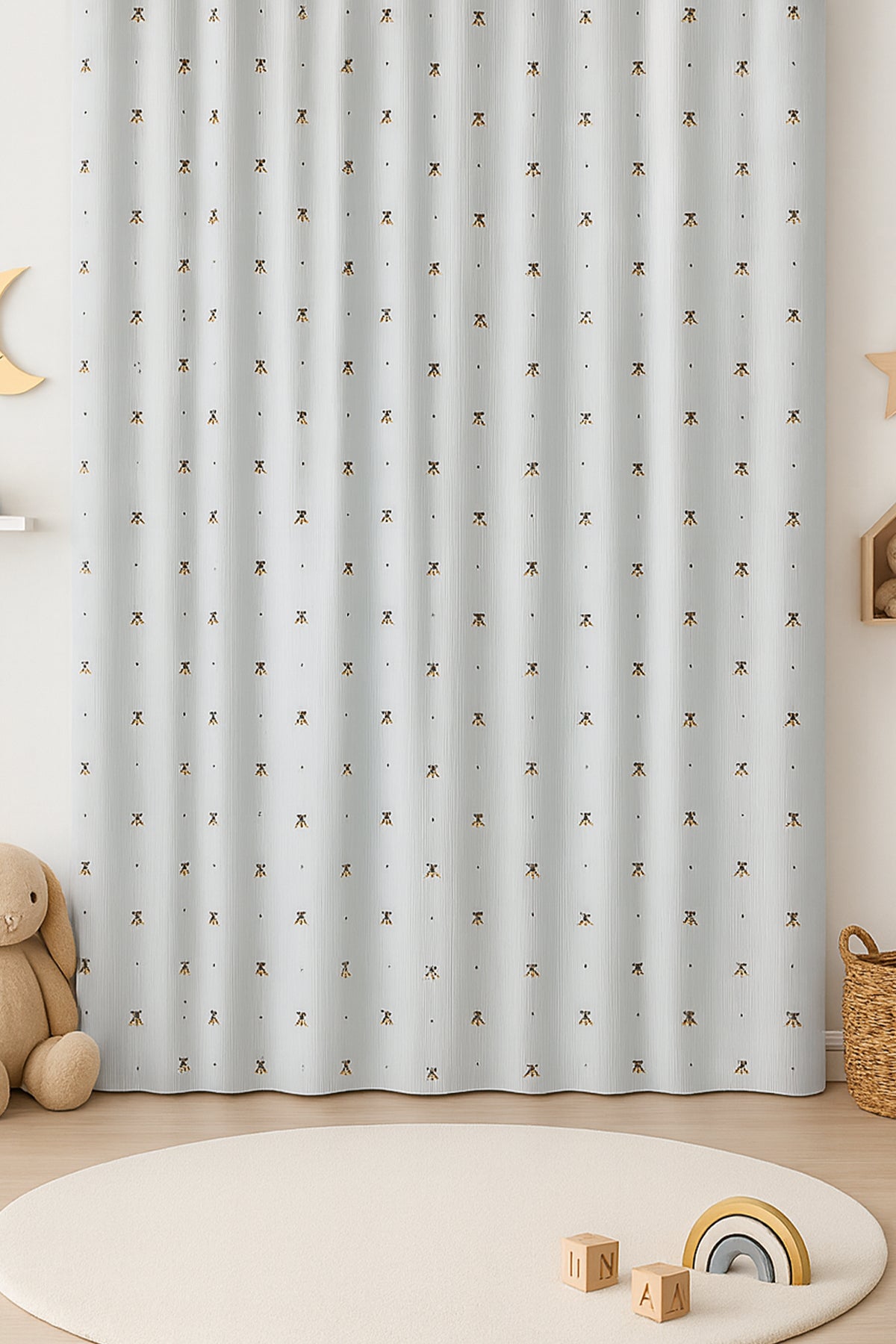 - Çocuk odaları için özel olarak tasarlanmış astarlı fon perde. Gri tonlarında arı desenleri ile sade ve modern bir görünüm sunar; odalara zarif bir dokunuş katar.