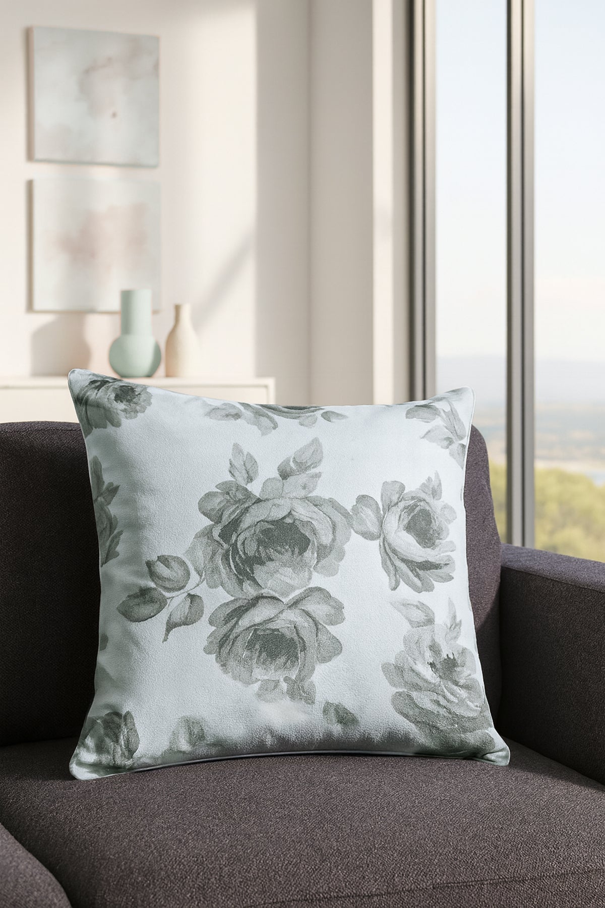 Duck Çiçekli Kırlent Kılıfı Bej Gri V1 40x40