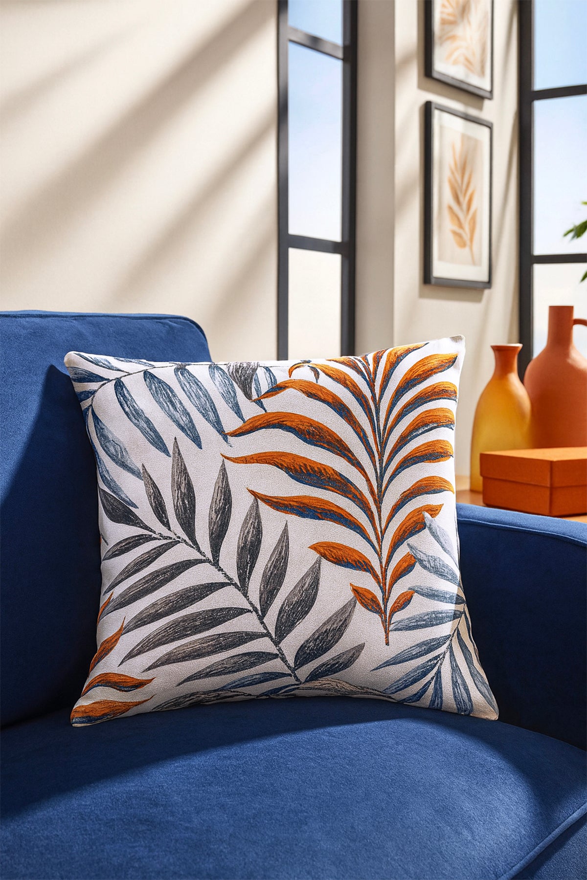 Duck Çiçekli Kırlent Kılıfı Kiremit Mavi 40x40