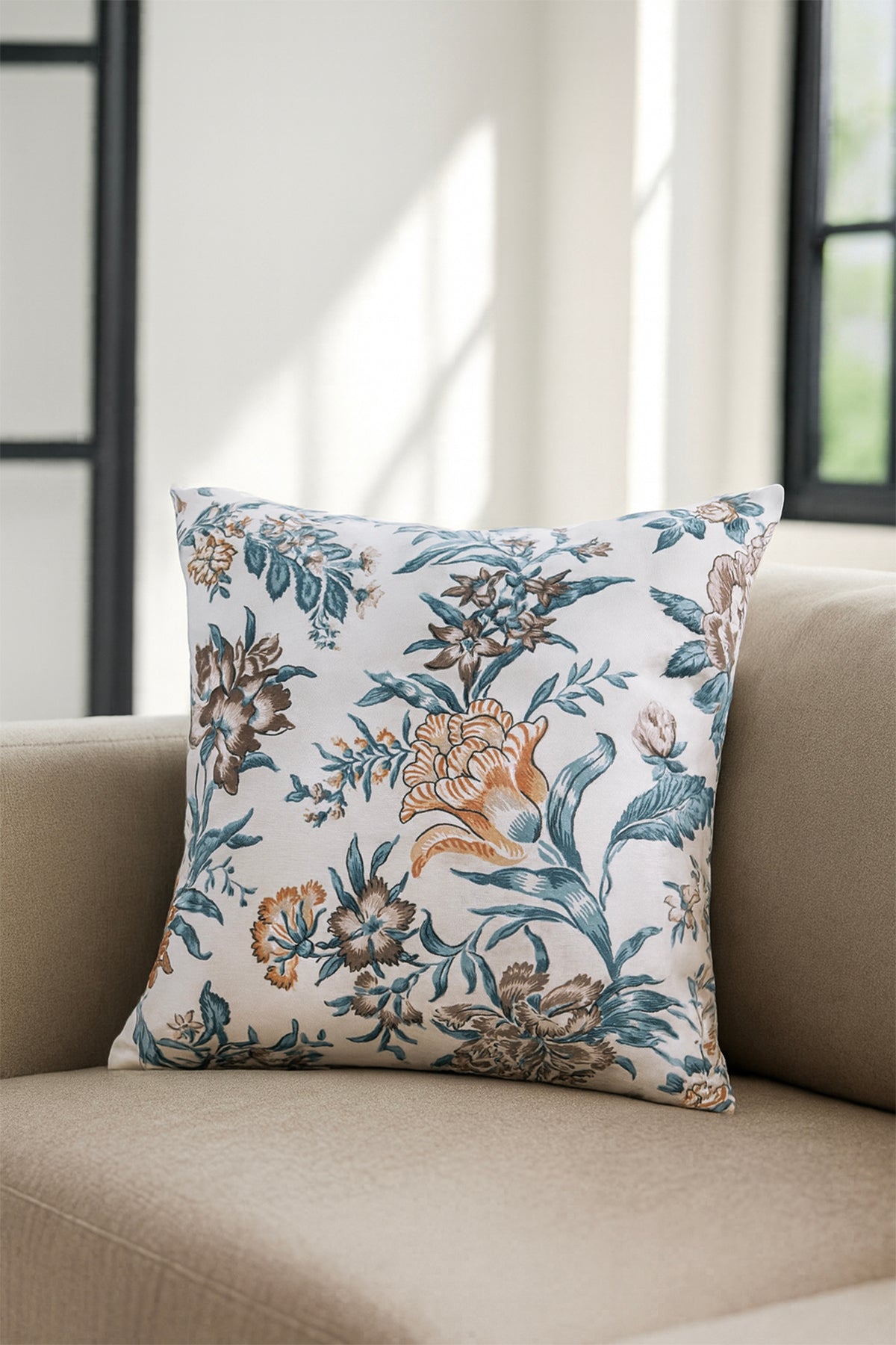Duck Çiçekli Kırlent Kılıfı Turkuaz Mavi 40x40