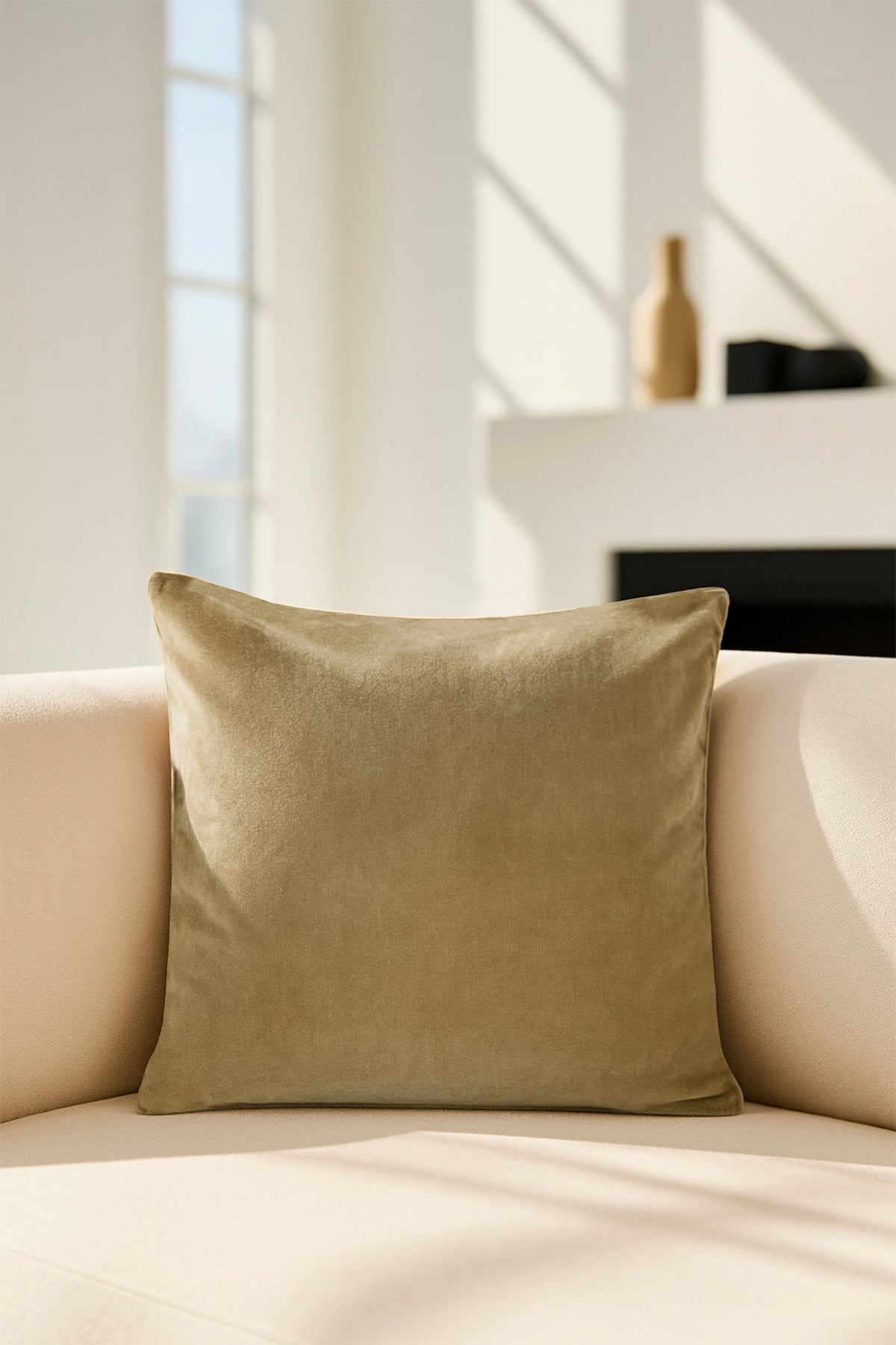 Düz Kadife Kırlent Kılıfı Bej 50x50