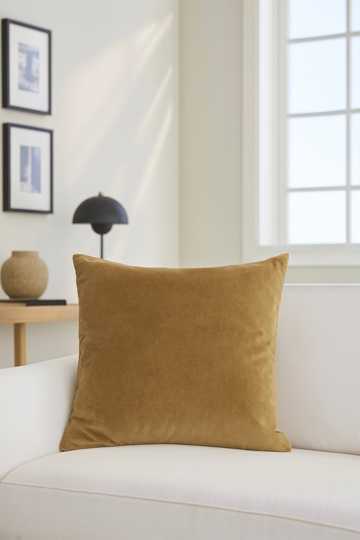 Düz Kadife Kırlent Kılıfı Hardal 50x50