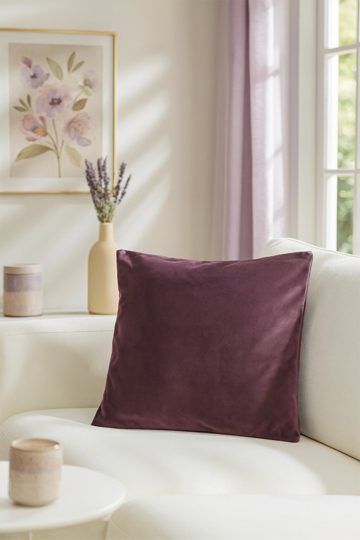 Düz Kadife Kırlent Kılıfı Mor 50x50