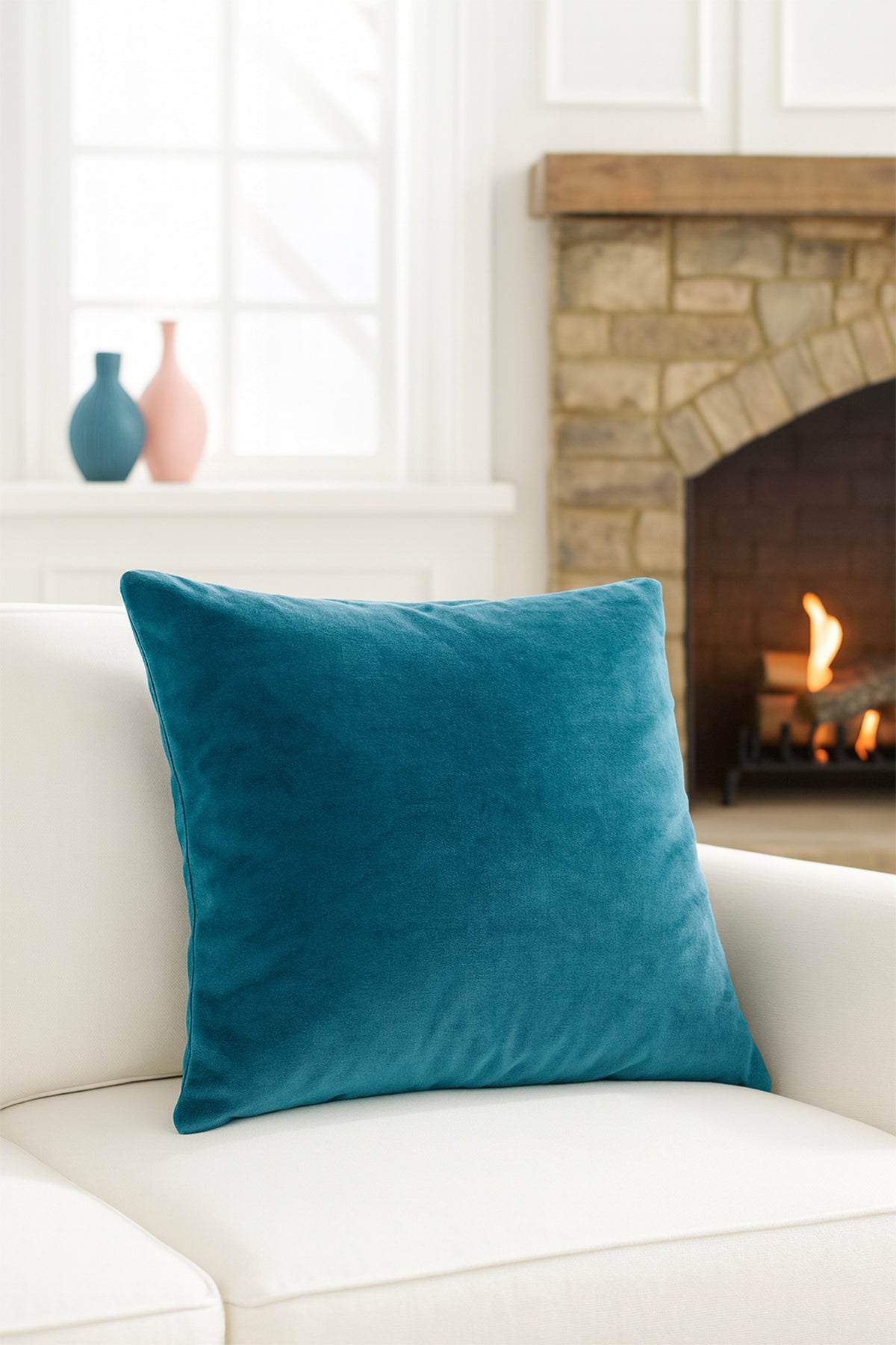 Düz Kadife Kırlent Kılıfı Turkuaz 50x50