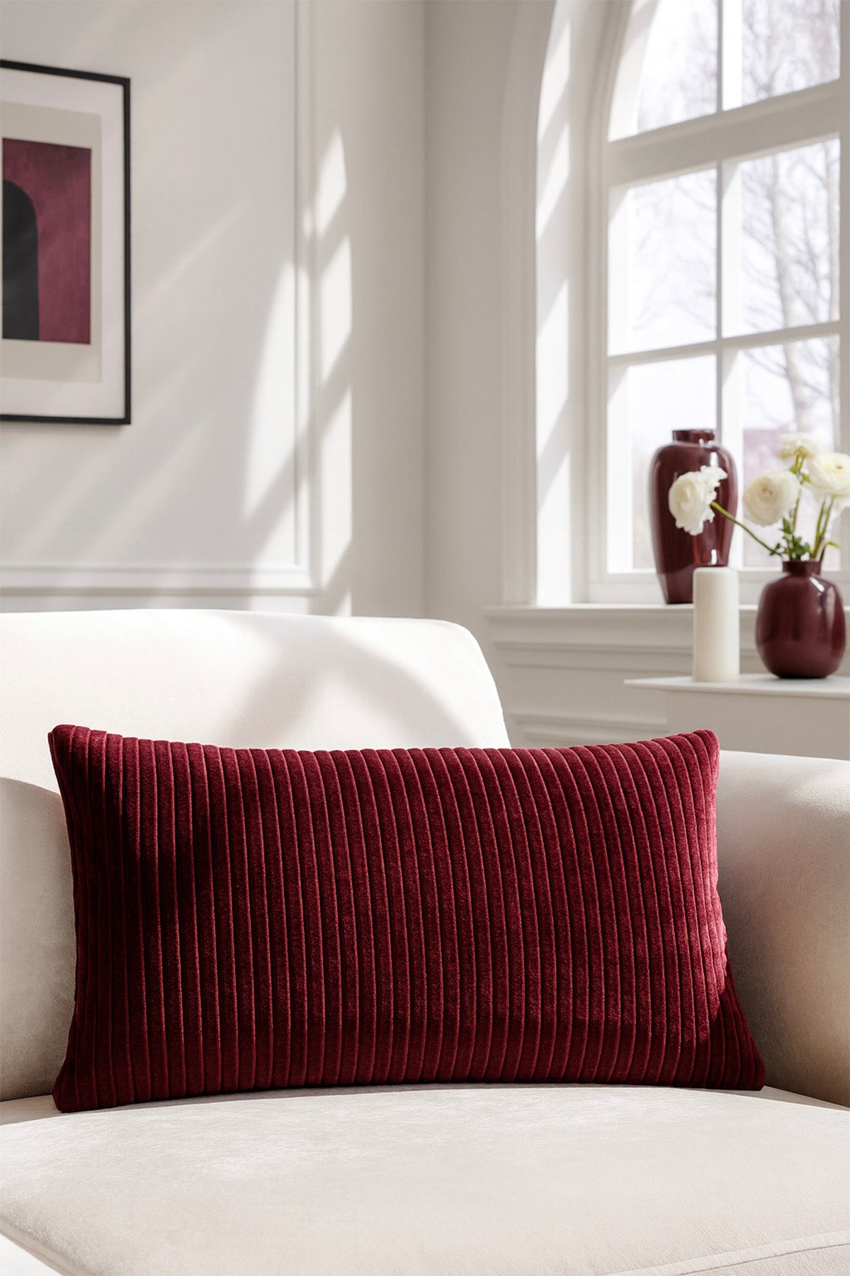 Fitilli Kadife Kırlent Kılıfı Bordo 30x50