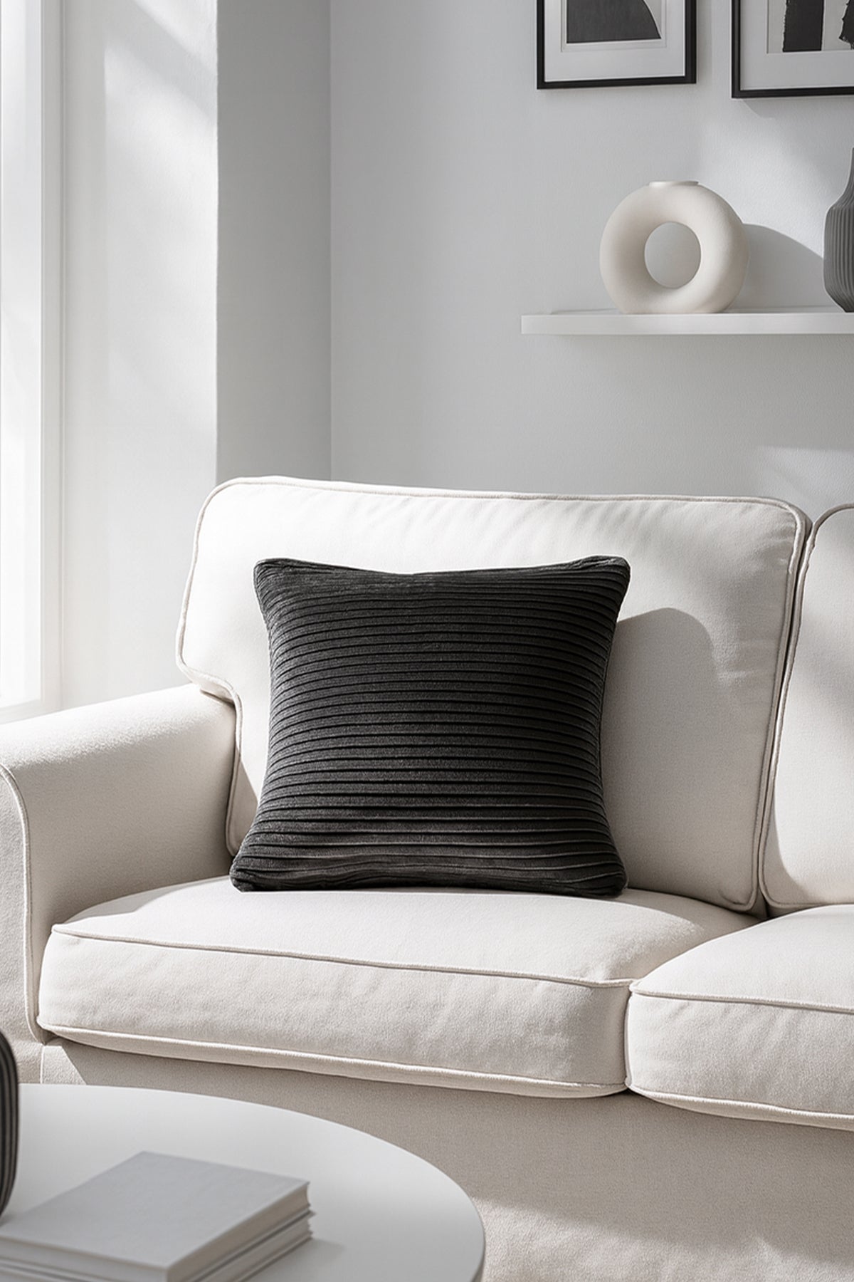 Fitilli Kadife Kırlent Kılıfı Koyu Gri 40x40