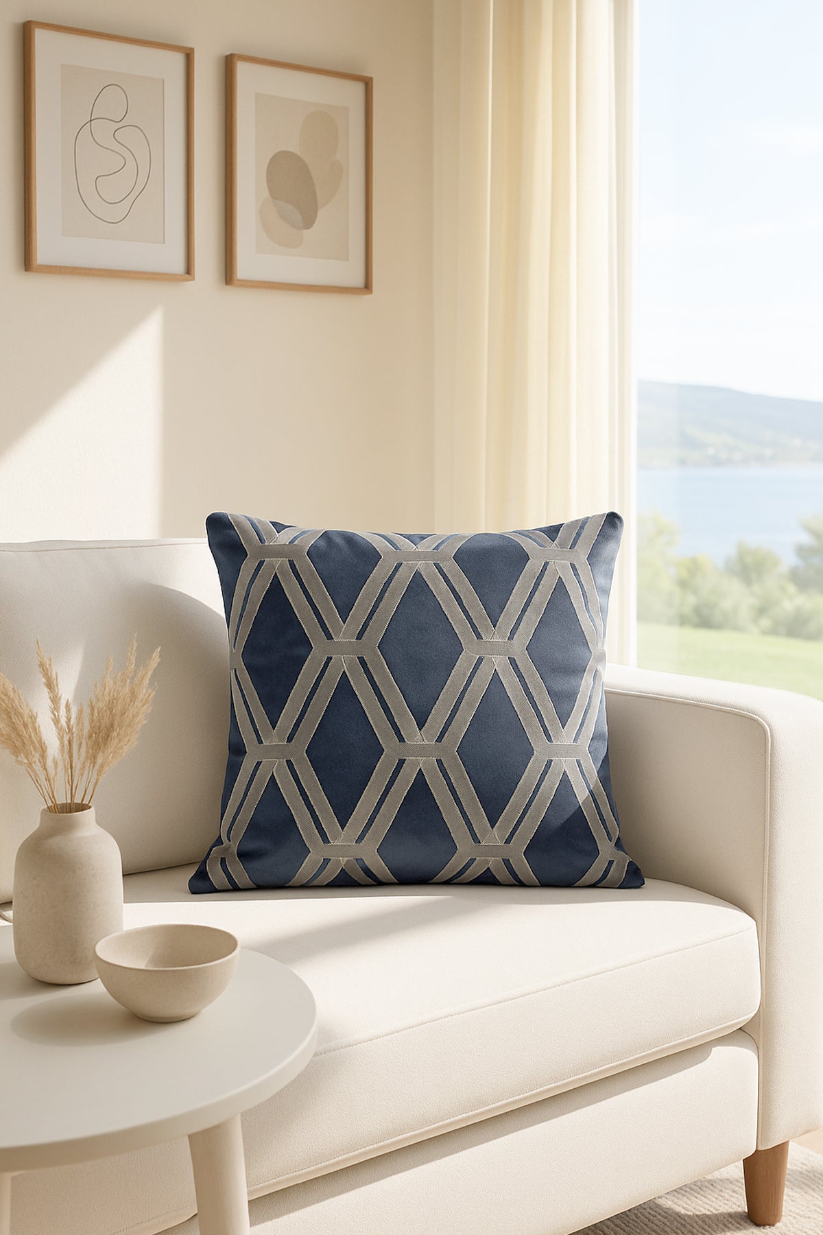 Kadife Kırlent Kılıfı Lacivert Gri V1 50x50