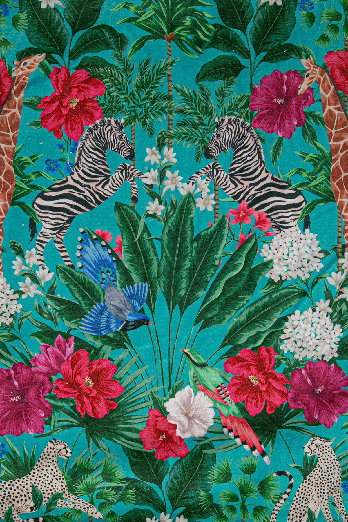 Kadife Kırlent Kılıfı Zoo Yeşil Pembe V1 50x50
