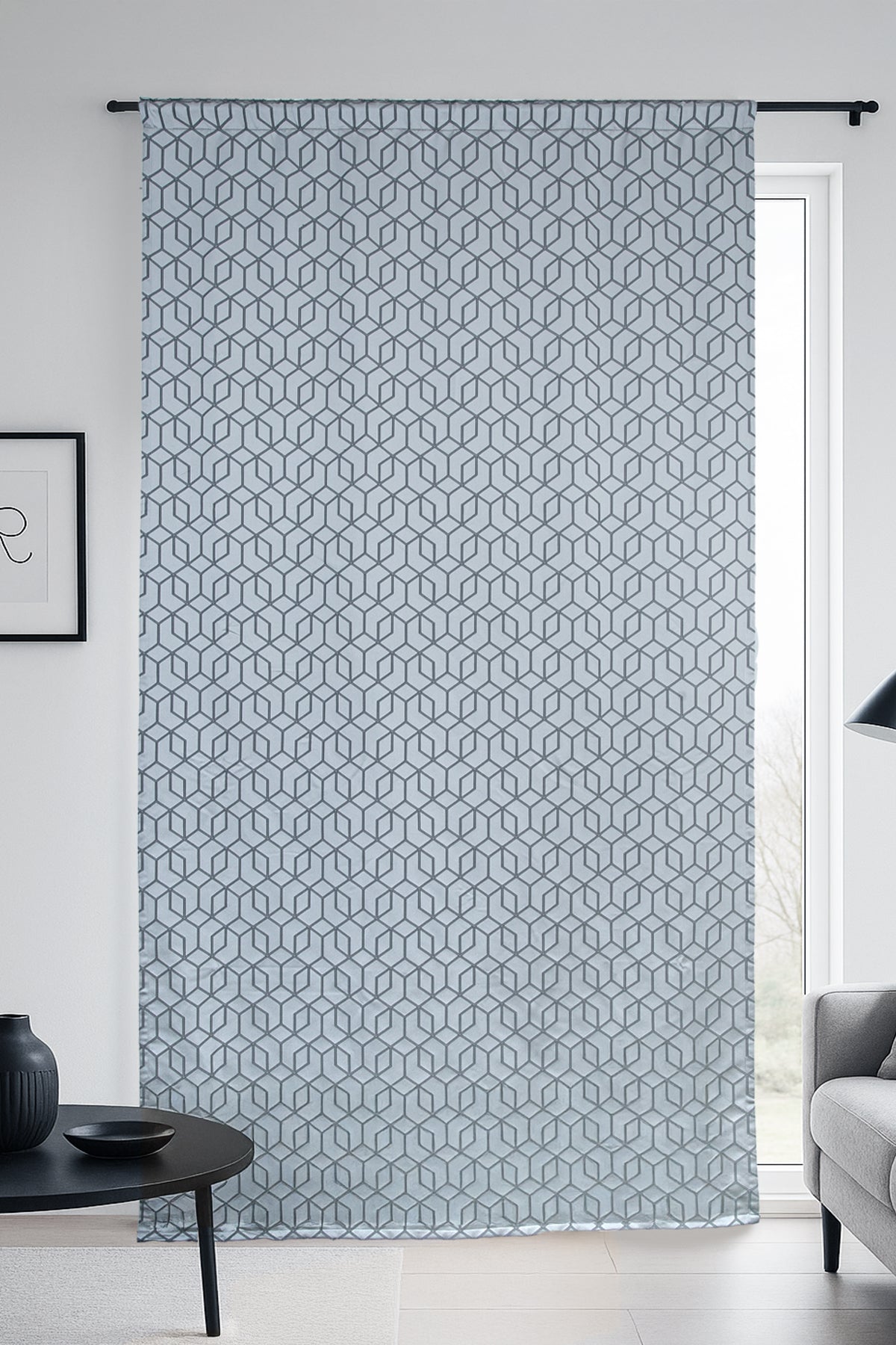 - Modern ve sade İnce grid desenli Taş tonlarında perde.